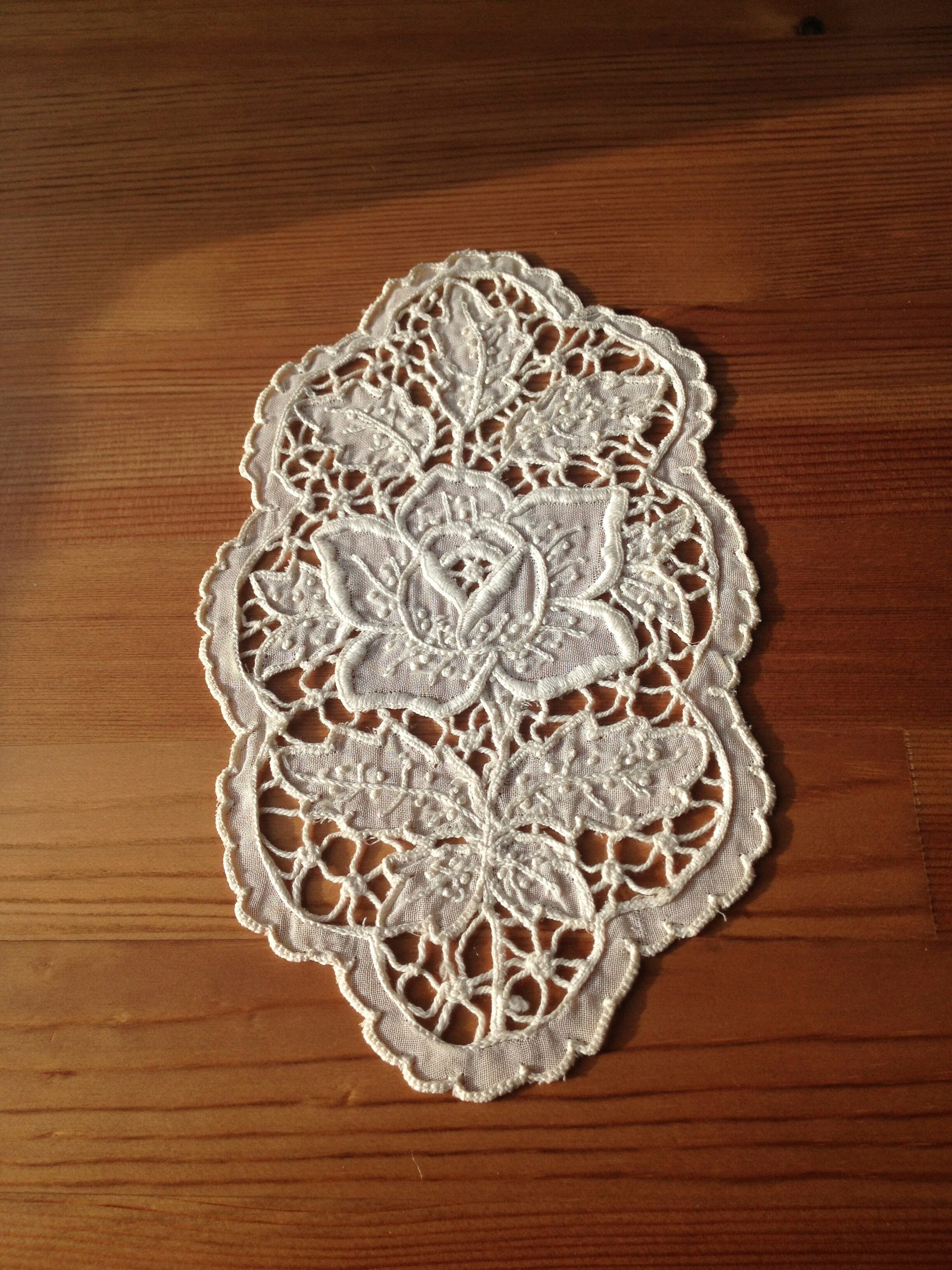 なんとも素敵な可愛らしいドイリーです。手作りの温かみと技術の高さが感じられる作品です。