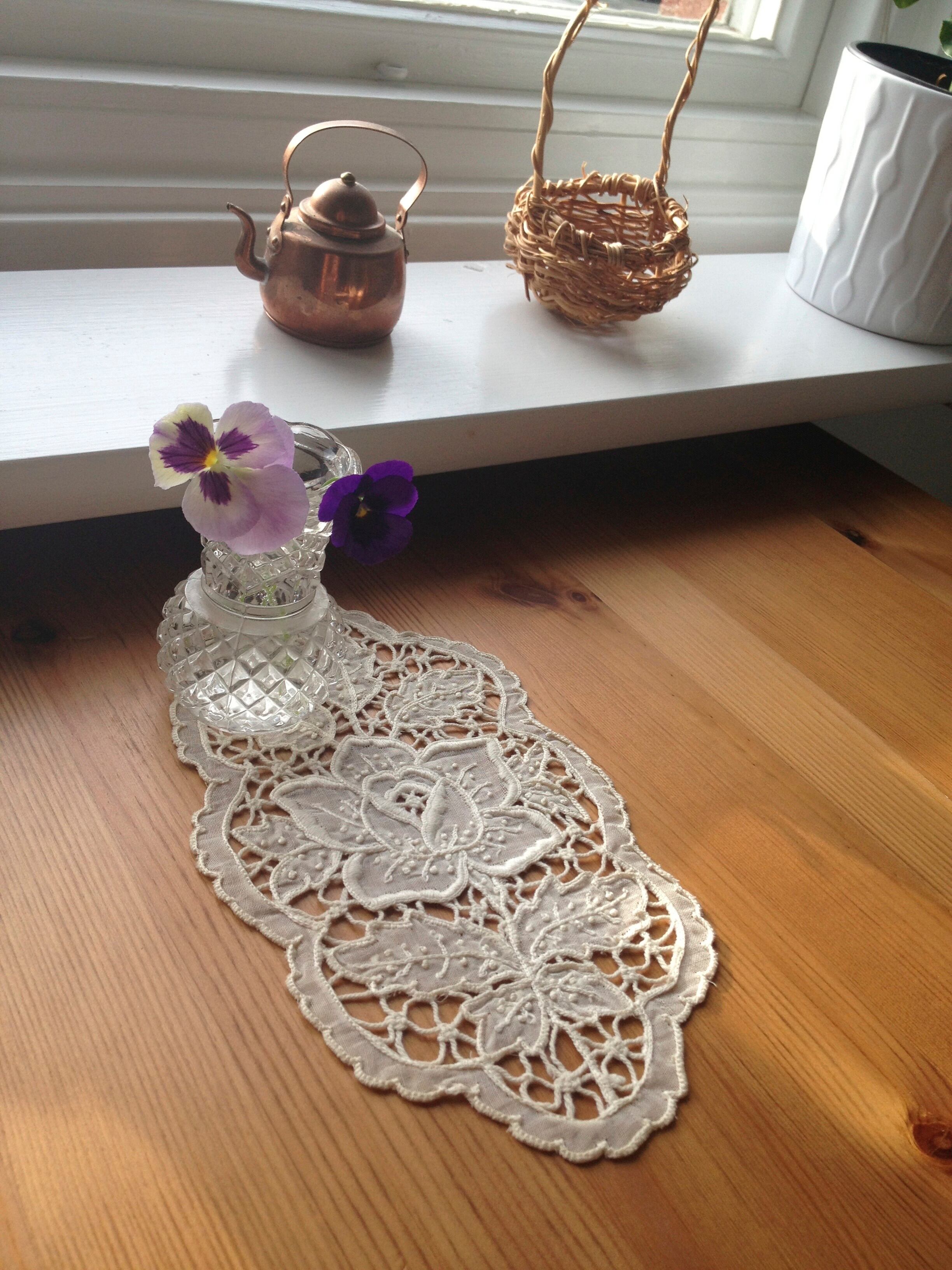 冬が長いスウェーデン。人々は暖かい部屋の中で物作りをしてその寒く、長い冬を過ごします。かわいく仕上げられたこのドイリーからもそんな光景が想像出来ます。