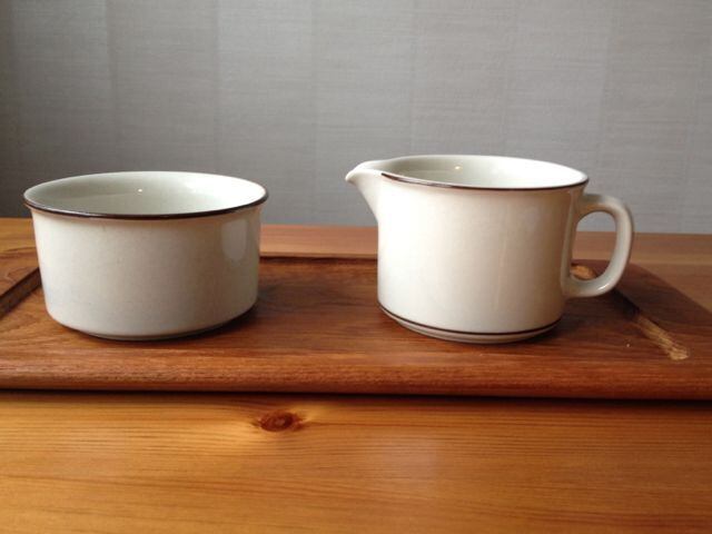別売りでクリーマーもあります。クリーマーは2年前に見つけたもの。そして、シュガーボールはつい最近、同じショップで見つけたものです。時を経て同じシリーズのテーブルウェアに出会う。ビンテージ品を集める楽しさはここにもあります♪しかも、シュガーボールはクリーマの相方です。きっと元は違う持ち主さん。